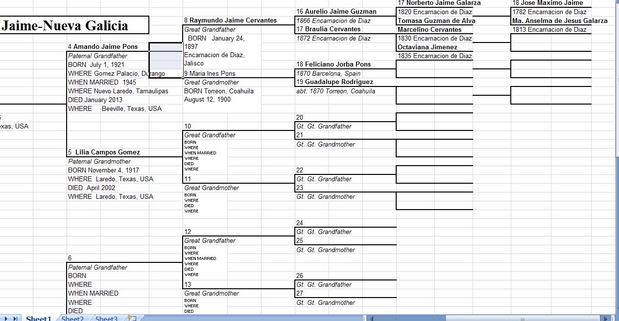 Jayme, Jaime, Jaimes, Xaimes, Sandobal, Cervantes, Pons, Jorba, Gomez, Ramirez, Valdivia, de la Mora, Rodriguez, Ramirez, Martin del Campo, Martin, de Anda, de Alba, Perez, Alvarez, Casillas, de la Barba, Delgado...