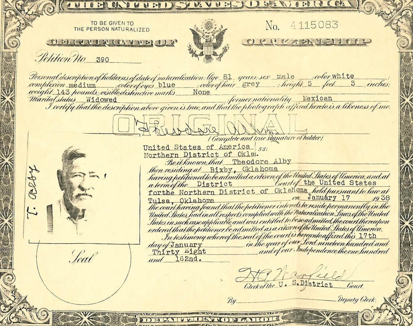 Log in or register to post comments <Return to Acidfree Albums> <Return to Members Genealogical Scans> <Return to Familia-Info> <Return to Alba> Teodoro Alba de Gonzales Certificate of Citizenship(Click on Image to Enlarge) Image Teodoro Alba de Gonzales Certificate of Citizenship