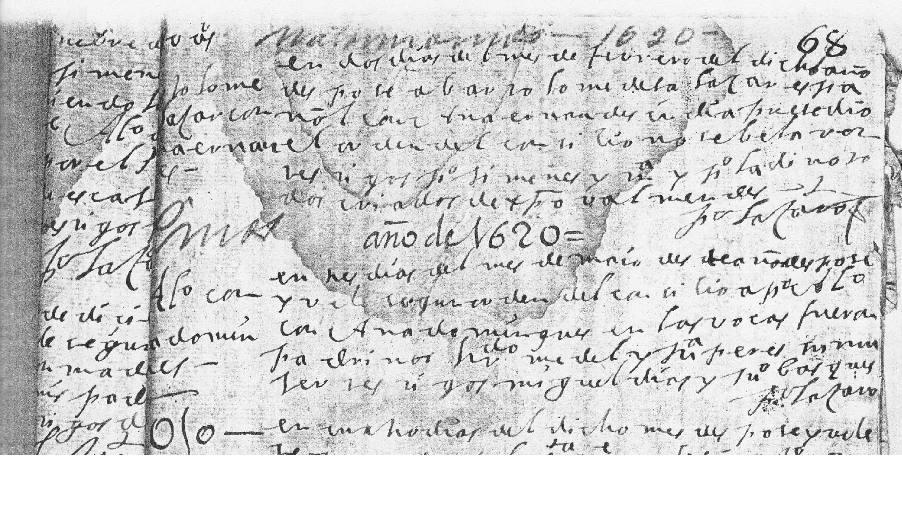 "En tres días del mes de mayo de este año desposé según orden del concilio a Po Alonso con Ana Domínguez en Las Bocas fueron padrinos Hernando Medel y Ma Pérez su mujer testigos Miguel Díaz y Juan Vázquez"